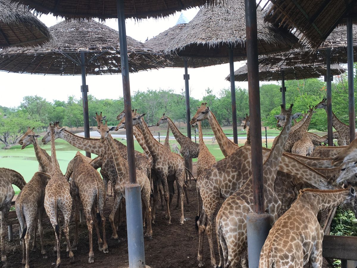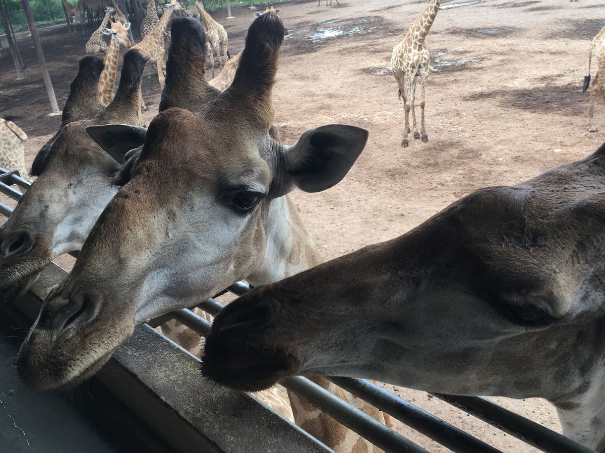 キリンの餌やりだけでも貴重な体験なのに、200頭のキリンを間近で見られて大興奮!