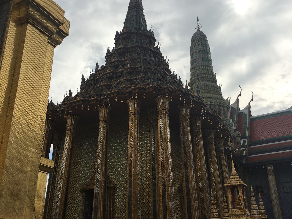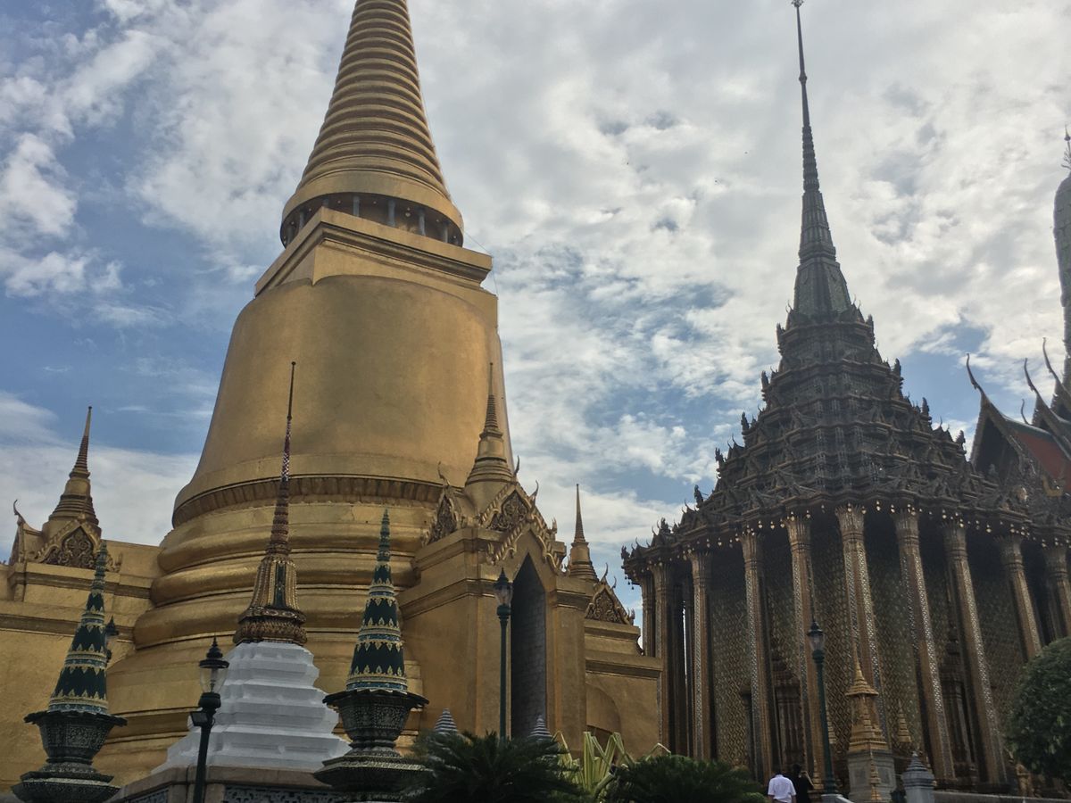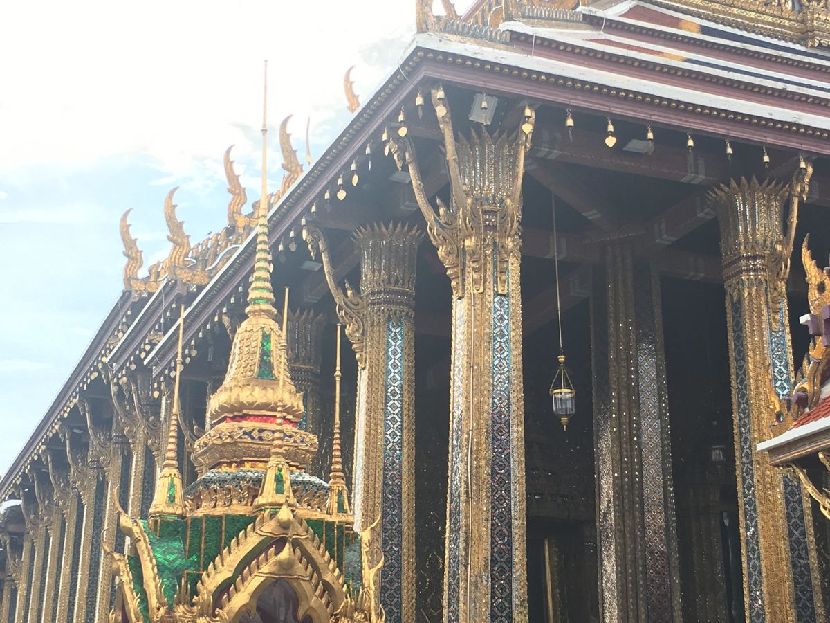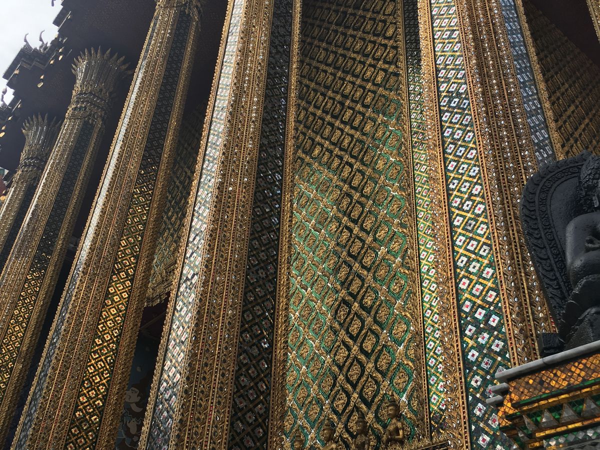 はじめに、王宮、ワットプラケオ別名エメラルド寺院を見学。とにかく混雑!王宮に入るのにパスポートまたはパスポートの写しが必要です。私達はパスポート現物を盗まれないように気をつけて持って行きました。コピーの人で現住所など聞かれている人もいたので、他の国の方々と間違えられたのかもしれないです。入口の係の人にもよるかもしれまでんが、ちょっと緊張の一瞬です。