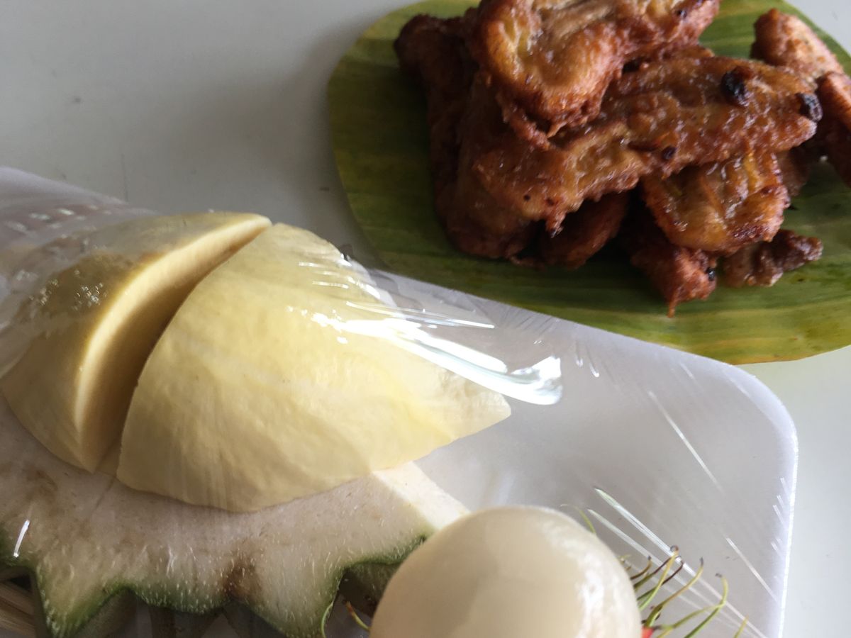 ちなみに、手漕ぎボートに乗り換える桟橋で売っていたザボンは、バンコク市内で買ったザボンより甘かったです。同じ桟橋で買った揚げバナナも美味しかったです。