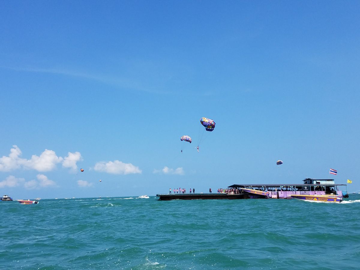 バスでパタヤビーチまでいき、そこから、高速船にのり、着いた先は、パラセーリング会場?でした。