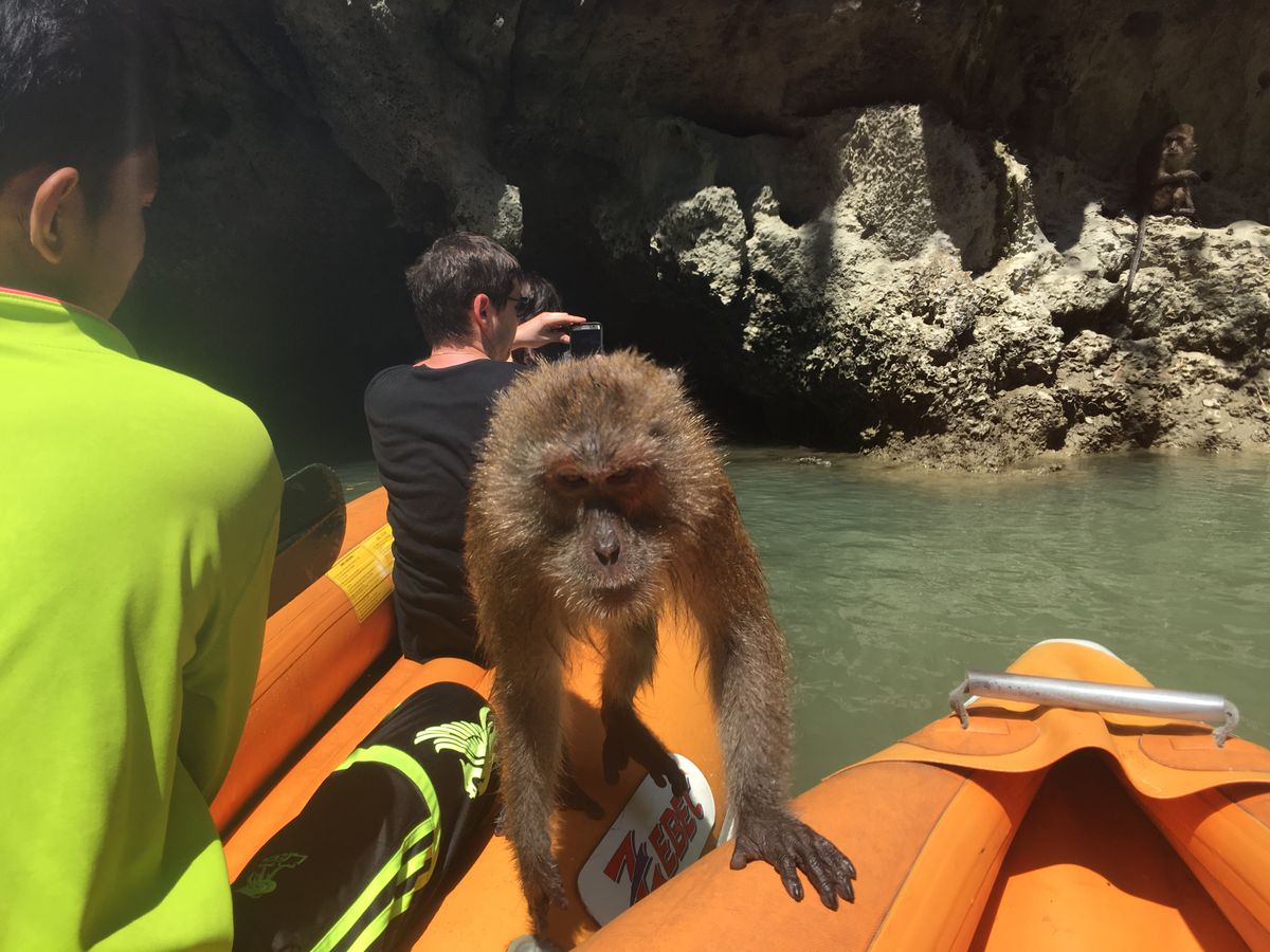 シーカヌーでは洞窟内を探検し、洞窟の先には日本ではみられないような異世界が広がっており、感動すら覚えました。また、船上にあるバナナを持ってカヌーに乗ると、野生のサルがカヌーに乗ってくることがあり、オススメです。