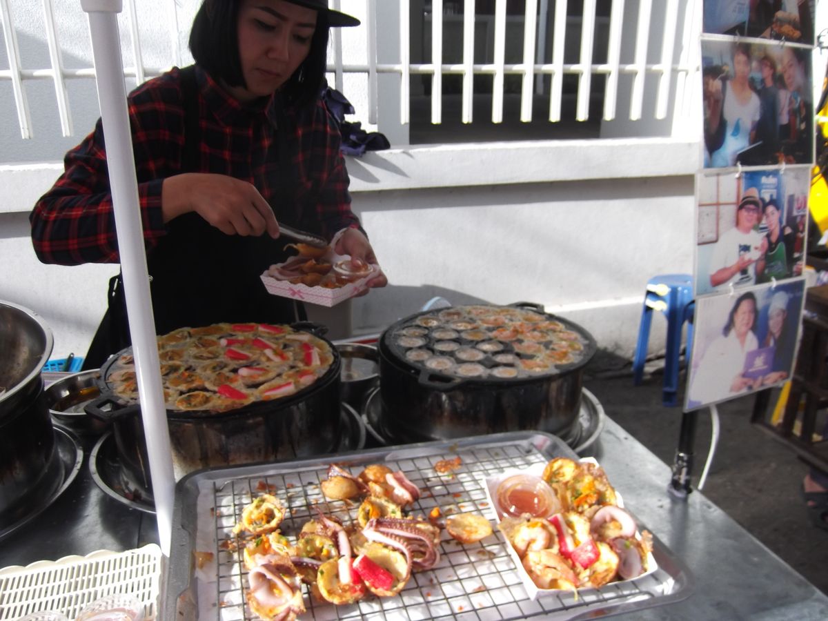 なるだけローカル色の強いところを、と思ってこのアンパワー水上マーケットのツアーを選びました。一見鄙びた田舎町ですが、川のほうに進むにつれて多くの屋台やお店が並んでいました。あまりにもありすぎてどれがいいのかわからず途方に暮れていたところ、ガイドさんがさりげなく「これはおすすめ」「これおいしいよ」と教えてくださったので、バンコク市内のレストランでは食べることのできない庶民のB級グルメをたくさん食べることができました。どれも安くてとてもおいしかったです。