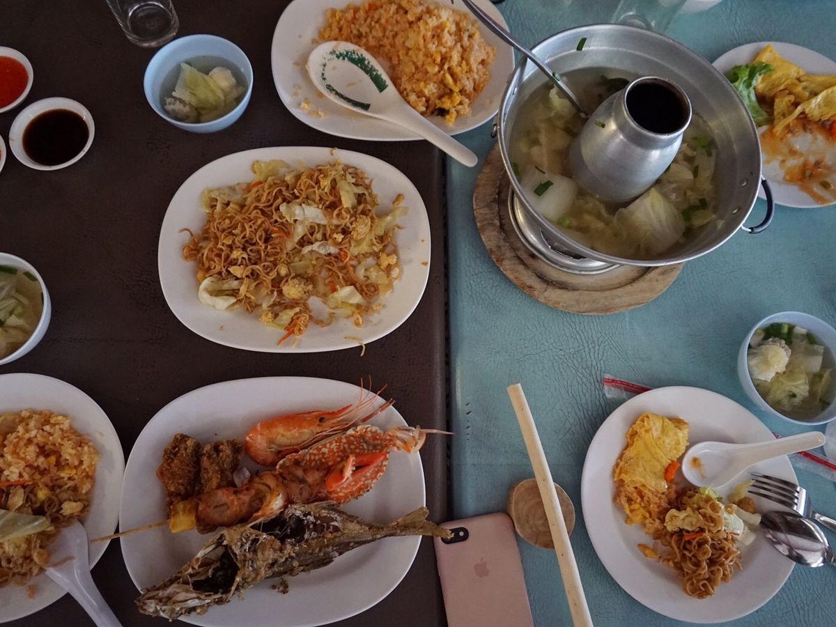 ランチはタイスキと魚やチキンのフライ、炒め物にチャーハンなど食べ放題でした。