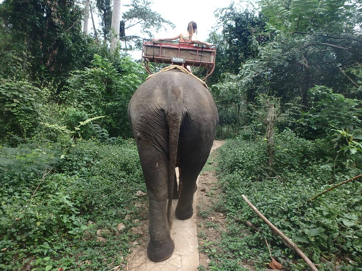 象乗り何もつけづにまたがらせてもらい何分も歩いて、象使いの人が写真や動画も沢山とってくれました。かなり揺れて一歩間違えば落ちて大怪我ですがスリル満点よい体験できました。