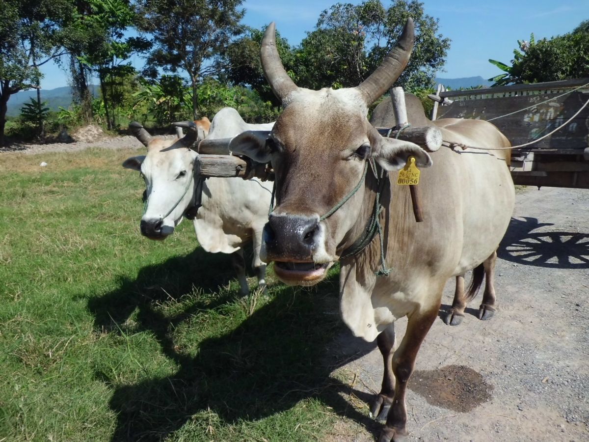 牛車に乗り田舎風景をコトコトと20分程揺られます。牛車の前にも乗せてくれたりおじさんは愛想がよく親切でした。(通称 タイの松崎しげる)牛は、人に慣れてて可愛いです♥