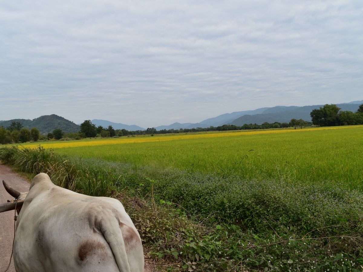 続いて田舎町へ移動して牛車体験しました。乗った時間は数十分程度であっという間でしたが、田園風景には癒されました。