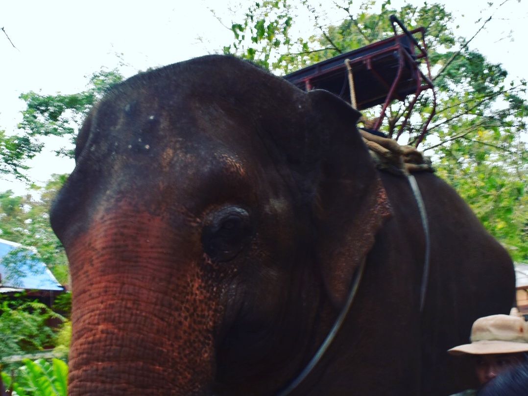 今回のツアーでは象に乗る機会がありました。象はすごく高く大きくとてもびっくりしました。緊張しながら象に乗り、高いから落ちるかと心配しましたがすぐ慣れました。象に乗っている時、カメラマンに写真をとってもらいますが料金がかかります。個人のカメラを預けることができないので写真が欲しいならそこで買うしかありません。象に乗った後、象使いに20バ-ツぐらいのチップを払うのも必要です。