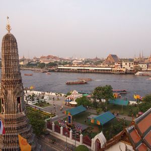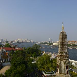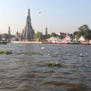 船でチャオプラヤ川を対岸まで渡るのですが、水面がキラキラしてとってもきれいでした。
