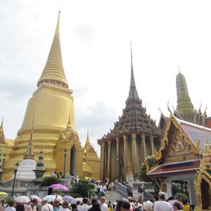 ワット・ポーとエメラルド寺院は特に込んでいて、外国人のほかタイの修学旅行生も多く、金閣寺や東大寺のような感じ。私たちは時期はずれで少人数でしたが、何十人もいたら絶対はぐれると思いますし、説明なんて聞こえないでしょう。