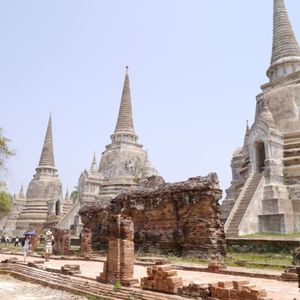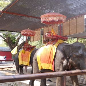 バンパイン宮殿はヨーロッパスタイルの建物や庭園があって綺麗でした。アユタヤ移籍は、もしかしたら夜に行った方がライトアップされていて神秘的かもしれません。わたしは昼に行ったので、暑いし同じような仏像や遺跡が続いたので、ダレました。象に乗るのは楽しかったです。象使いのお兄さんが、写真を撮ってくれたのですが、象が鼻でチップをねだってきました。象使いと象がナイスコンビネーションでした。