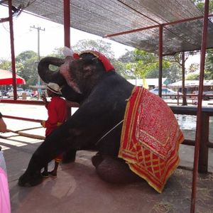 象乗り体験は初めてでしたが以外に柔らかい象の頭皮に可愛らしさを感じ、同時に飼育の人の持っていた鈎の付いた飼育棒が可愛そうで人間の勝手さが覗かれました。水害で多くの生き物が被害を受けたそうで、私たちの使う少しのお金でも役に立って貰えれば良かったと思います。