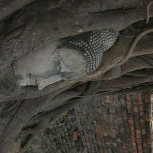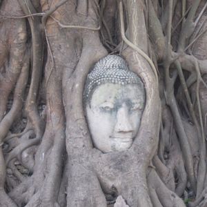 マハタートの木に抱かれた仏の顔 だんだん木に覆われていくので10年後にはもっと顔が狭くなるでしょう…と聞きました。