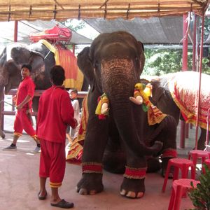 象乗り体験は、10分ですが、十分に楽しめました。20代の娘達も、大喜びでした。写真を子供達と、途中で取り合っていたら、象が鼻でしつこくチップを請求してきました。象使いが、20バーツ紙幣を要求してきたので、しぶしぶ出しました。あれは、出さなくてもよかったのかなと思いました。