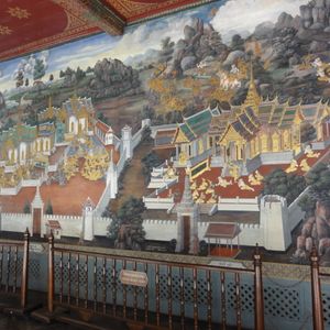 雨も小ぶりになり、チャオプラヤー川を舟で渡らせてもらって実際行ってみると、王宮の大きさ色彩の美しさ、模様、壁画の物語や絵柄、どれをとっても素晴らしく感動しました。日曜日だったこともあり、たくさんの人でいっぱいだしツアーなので1つ1つ見るのに時間制限ありは仕方ないこと。王宮観光は個人的にもう一度ゆっくりじっくり見て回りたいと思いました。
