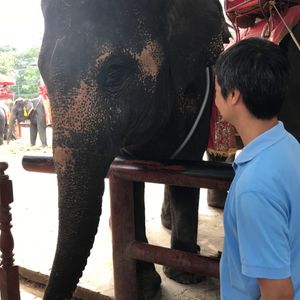 昼食は、ホテル内のレストランでとても清潔で、料理は品数が多く想像以上に美味しかった。ガイドさんは、日本語が上手で、歴史の話しや象さんクイズで、バス車内の雰囲気が良かったです。 象乗りはとても楽しかった。