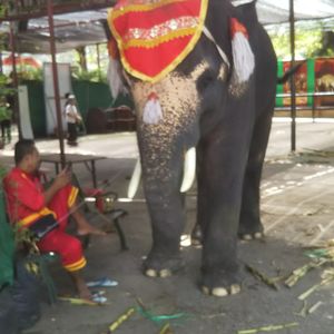 雨季のため、川には入りませんでしたが、カンチャナブリの自然の中を巡る像乗り体験は楽しかったです。同行した友人は、「アユタヤの像乗りより良い!」と言っていました。像使いさんが途中で像を降りて、マイカメラで写真を撮ってくれます。降り場に近づくと像使いさんがチップを要求してきます。ガイドさんによると1人当たり20バーツが相場な感じでした。