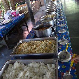 タムカセー駅近くのタイ料理店のビュッフェでした。ツアー客はテラス近くの席が用意されていました。お店から川や鉄道の眺めが楽しめました。案内されたブッフェ以外でも奥の方にある麺コーナーも利用できるようでした。