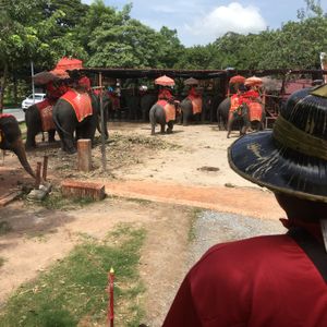 アユタヤ遺跡の後、象乗り体験をした。象使いの方凄くて、前の象を追い越していくので、追い越された方とお互いビックリ‼️笑うしかなかった…車の前に出てぶつかるとハラハラ!でも、楽しかった。写真を撮ってもらうために、時間差で乗ると良いかも…