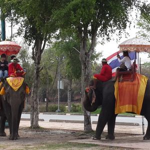 バンコクから車を走らせアユタヤ遺跡へ!観光ガイドブックで見たことがあるアユタヤの景色が広がっていました。自分で行くのが面倒な場合、このツアーに参加すると良いかと思います。象乗り体験もなかなか面白かったです。