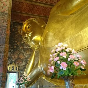 寺院内部は裸足で進みます。足を拭く物があると良いですね。タイの寺院では、生き物を保護しており、犬や猫がたくさんいます。