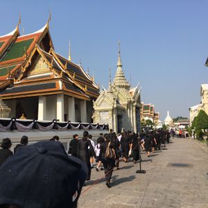 今はプミポン国王の喪中なので、王宮は女性でも足首まであるパンツやスカートがいい。