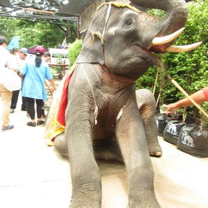 遠い!帰りは3時間!でも、行きも帰りも睡眠に丁度良い位でした。洞窟寺院、象乗り、イカダ下り、鉄橋見学、昼食を来るはずの列車が故障で来ない中上手くやりくりして飽きずに、待たずに最後は臨時の列車に乗れて感動して帰って来ました。降りる時も各自に合わせて最適の場所で解散してくれました。タイの山沿い、ミャンマー近くでしたが、本当に良かったです。象使いのお兄さんのテクニックは一見ものです。100Bに値します。