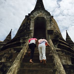 1時間ほど走ると、カンチャナブリの街に到着し、最初の観光のお寺に行きました。当初心配していた雨も上がり曇り空で蒸し暑い中お寺を見学しました。最初の階段に関してはたいしたことはありませんでしたが、それよりも洞窟の中がとても狭くその中を少しですが登るのが大変でした。高齢者の方はきついと思います。