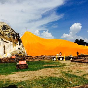 次に向かったのがアユタヤ遺跡。涅槃像は想像していたよりも大きく、木の根に取り込まれた仏頭はとても神秘的でした。