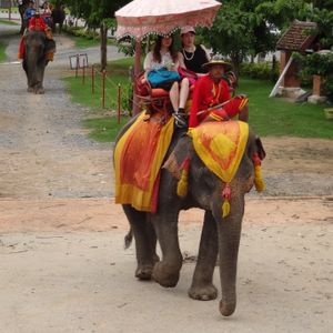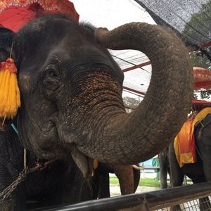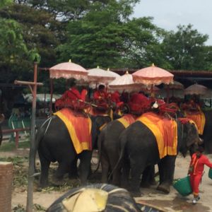 アユタヤ1日ツアー(ゾウ乗り付き)に参加しました。アユタヤにはバンコクから自力で行けますが、今回は母といっしょだったのでツアーを選択しました。結果、ツアーにしてよかったです。見るべきところが想像以上に快適に見て回れました。移動には清潔で乗り心地のよいバンが使われ、昼食は質、量ともに食べ応え十分のビュッフェ、そろそろ疲れたなと思ったころに出てくる冷たい水とおしぼり(紙じゃなく布!)、というように細かいところまで気遣いを感じられるツアーでした。しかもゾウにまで乗れて、当初、タイにあまり期待していなかった母も大満足でした。