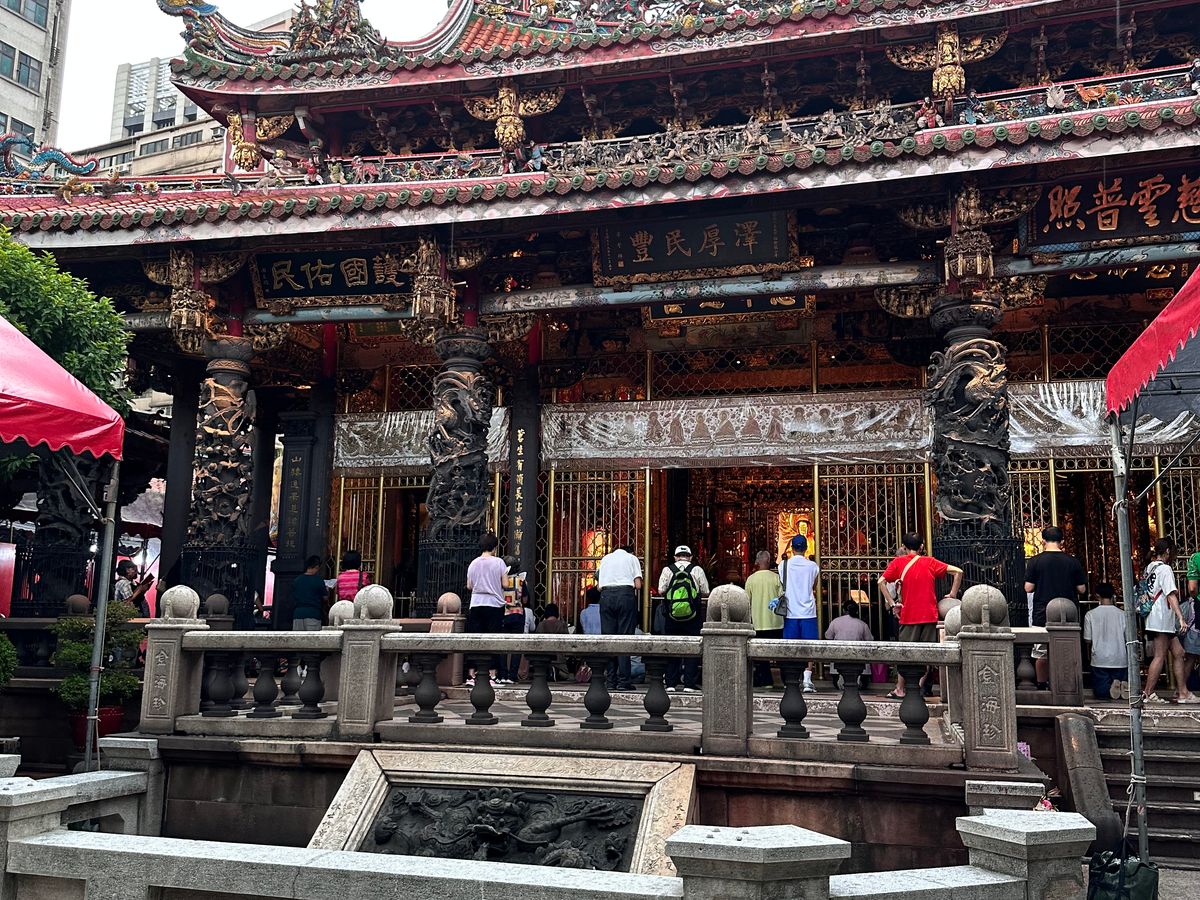 ご馳走するから是非食べて!との事でチャレンジさせてもらいました。阿妹茶僂で楊さんとはいったんお別れ。月曜日の午前中だったこともあり、テラス席で1時間近く景色とティータイムを満喫。駐車場で合流するとまだ時間あるとの事で、できれば観光したかった龍山寺にも連れて行ってくれました。