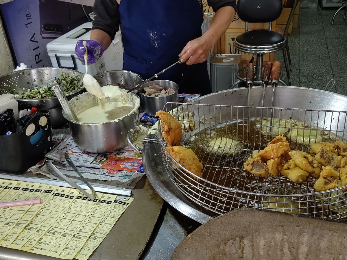 地元の人が通う、牛肉湯と牡蠣のかき揚げの店に行きました。待ち時間も少なく、美味しくいただきました。