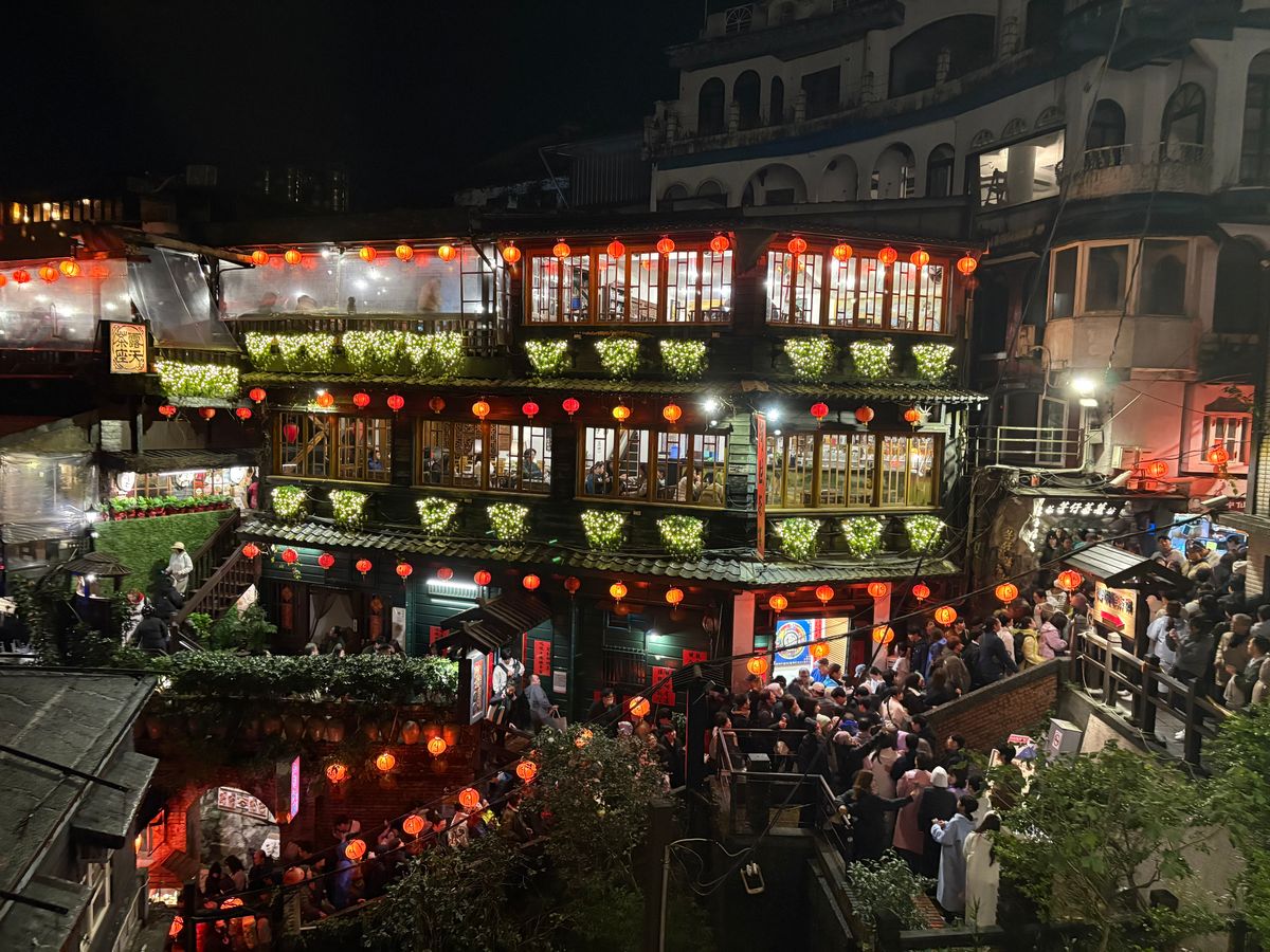 九份の『千と千尋の神隠し』の舞台のイメージが見られるスポットの人だかりは凄くて、とても写真が撮れる気がしませんでしたが、「日本人は遠慮してしまいがちですが、それでは永遠に写真が撮れませんから頑張りましょう!」と応援してもらって、ちゃんと写真撮影までこぎつけました。