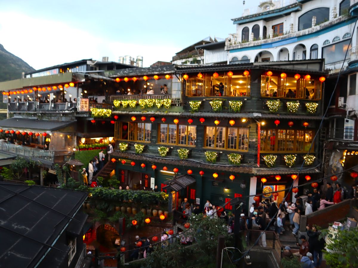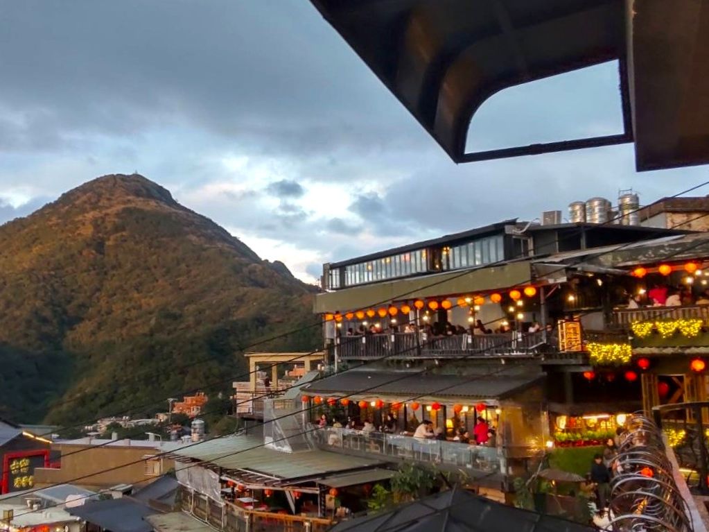 また、そのスポットの先にある『海悦楼茶坊』では断られそうなところを交渉してくださって見晴らしの良いテラス席を確保していただいて、こちらのお店のテラス席や入口前のスペースでは、人混みに邪魔されることなく九份の街並みを楽しむことができました。