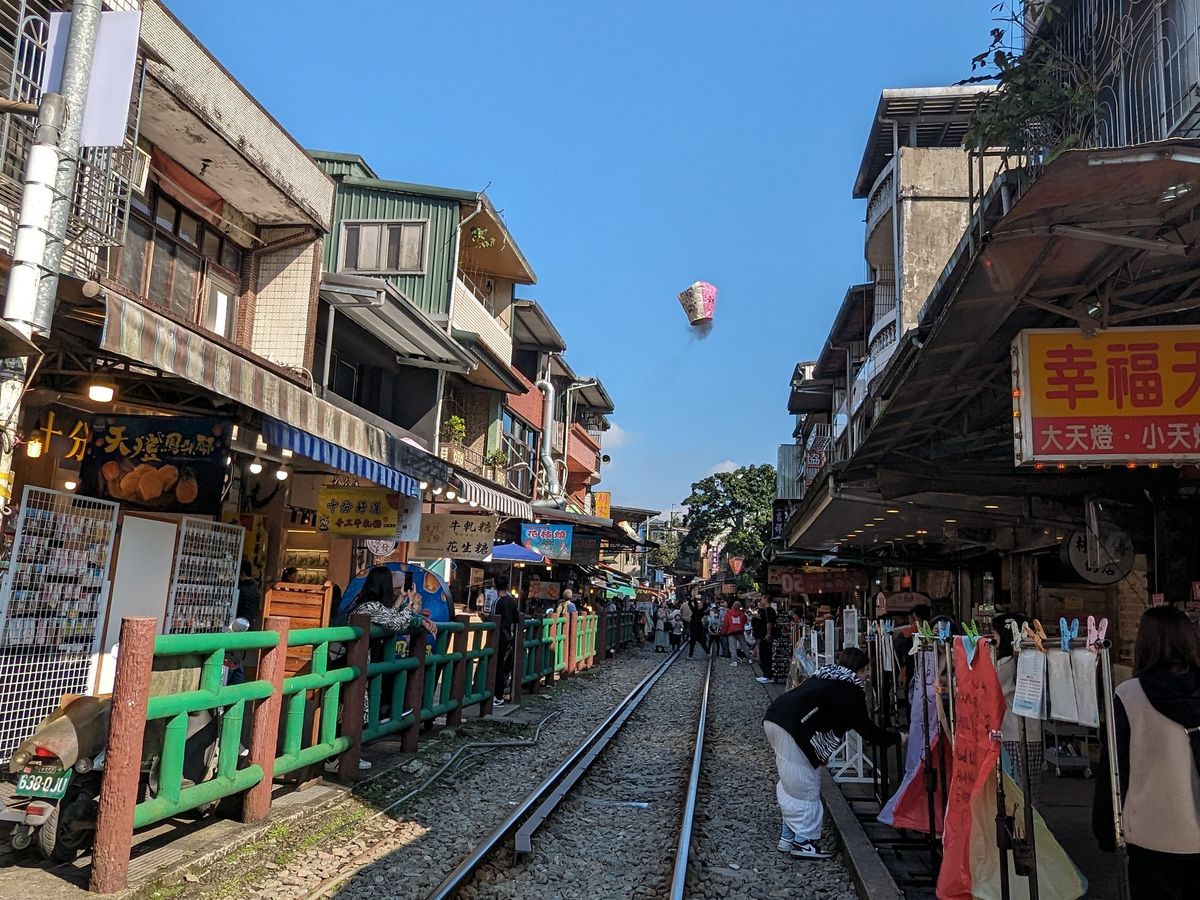 まずは十分。ここで滝も行くか、九份を長めにするかという選択だったので、我が家は滝をパス。結果として良い選択だったと思いますが、もし十分で滝も行きたいなら8時間必要な気がします。ランタン上げは想像してた以上に楽しく、台北旅行で外せないアイテムと思いました。お店を紹介してもらったので、店選びで悩むこともなし。お店の元気がお姉さんが大量に写真も撮ってくれて、これも良い記念になります。