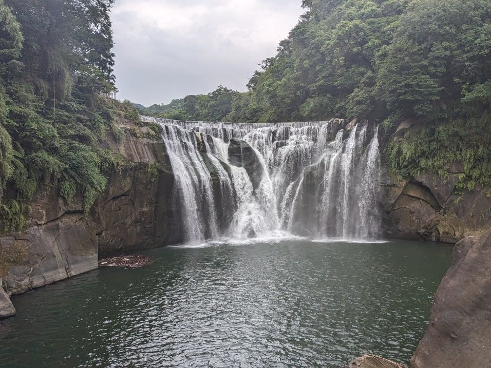 九份を朝9時半に出発、まずは猫村を目指しました。猫村は廃坑のまち。トロッコ列車で炭鉱体験、村の中には暑さででろーんとなったかわいい猫がたくさん。しかし、暑くて長居は出来ません。次に十份へ向かい、まずはランタン揚げ。そして遅めの昼食を取って十份瀑布へ。さすが東洋のナイアガラというだけあって、マイナスイオンをたっぷり浴びました。台北市動物園から今度は4kmのロープウェイに乗って猫空へ。緑がきれいでした。車は猫空へ先回りしてもらい、最後は台北市内のお茶屋さんへ。試飲し放題をいいことに、おなかがタップンタップンになりながらも10数杯を試飲しました(それなりにお茶も買っちゃいましたが)。ホテルに無事送り届けてもらい、8時間のツアーを終えました。