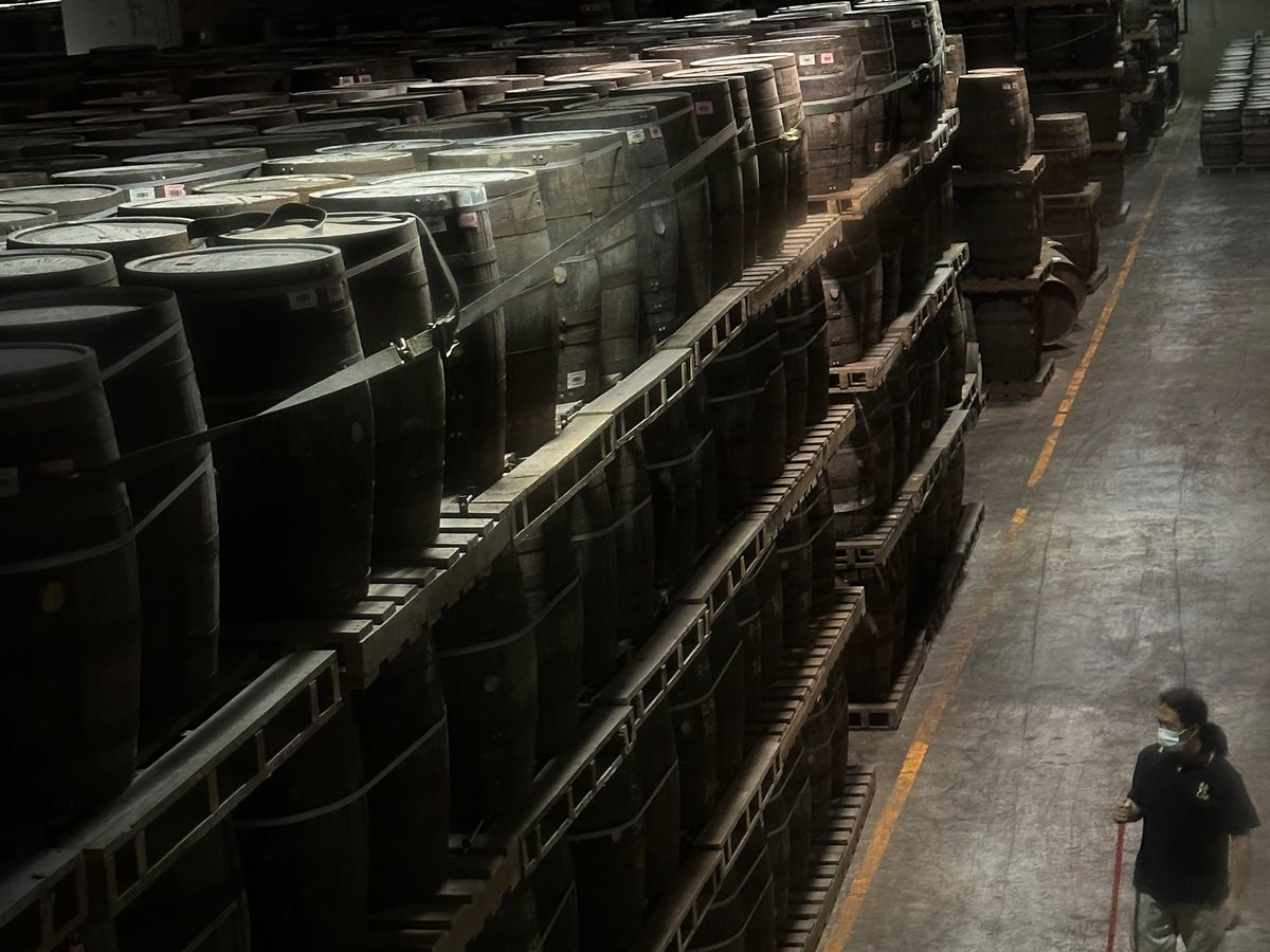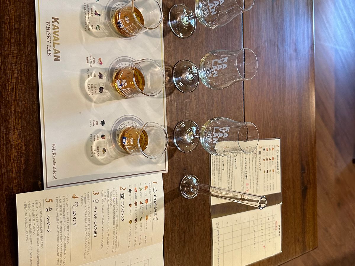 朝ホテルに迎えに来て頂き、今回の旅のメインテーマである宜蘭のカバラン蒸溜所見学とウィスキーブレンド体験を楽しみました。まだ開場から間もない時間に到着出来ました。まずブレンド体験からスタートしました。カバランのHPでは中国語のみの説明との事でしたが、運良く英語での説明を受ける事が出来ました(お互いカタコトですが)。早い時間だったので私たち夫婦だけの貸し切りでした。異なる4種類のシングルモルトウィスキーを香りと味をみながらブレンドして、世界に一つだけの自分好みのブレンデッドモルトウィスキーを作る事が出来ました。蒸溜所見学はガイドなしを選び自由に見学を楽しみました。見学コースは余市や宮城峡のニッカウィスキー蒸溜所とは異なり、全て建物内で完結します。ガラス越しに工程を見る事が出来てパネルも掲示してあるので他の蒸溜所を見学した事があればガイド無しでも良いでしょう。