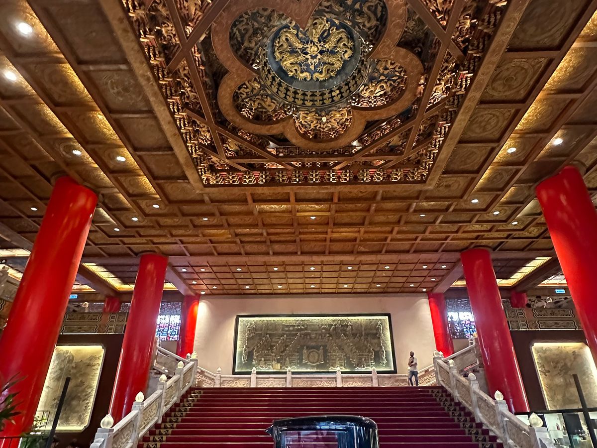 カバラン蒸溜所見学の後は台北に戻り、ホテルにウィスキーを置いてから(当日は34度と大変暑くウィスキーが悪くならない様に、とのドライバーさんのご配慮)、地元の方が行く餃子店に案内してくれました。水餃子、小籠包と魯肉飯1人前ずつで200NTDでお釣がきました。味も凄く美味しかったです。その後、忠烈祠での衛兵交代式を見学、圓山大飯店の豪華なロビーを見学した後、中正紀念堂の衛兵交代式も見学しました。その後外からのみまたは車中からのみになりましたが、総督府、白色恐怖政治受難者紀念碑、中華民国台北賓館、北門‐承恩門、郵政博物館台北館、台灣文學館、台北記憶倉庫等を巡りました。