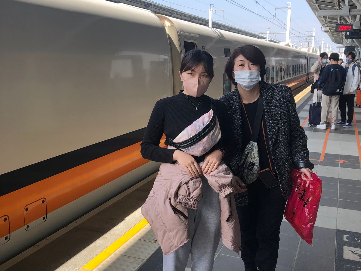バウチャーを交換してチケットを発券してもらうのですが、その際に座席指定もします。新幹線そのものは日本国内で走っている700系?とほぼ同じです。荷物スペースがあったり、コンシェルジェ的な人が車両を循環されており、きめ細やかな対応をしてくれました。
