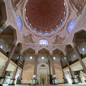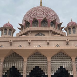 (2)ピンクモスク。プトラジャヤにあり、政治的な施設も多くあります。ブルーモスクより人が多いです。モスクの方たちはみなさんフレンドリーでした。装飾も美しいですが、ボランティアガイドさんがいないのと、大きさ的にあっという間に見終わりました。近くにフードコートがあり、そこで昼食をとりました。