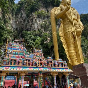 (3)バトゥ洞窟。ピンクモスクから1時間弱。みんな車で眠っていい休憩になりました。去年カラフルな装飾がほどこされたようで、見応え抜群でした。時間の関係で途中までしか上りませんでした。ランチタイムをもう少し短くすべきでした。階段はかなり急で、下の子を抱っこして上るのはキツく、時間があっても途中で引き返したとは思います。猿がかなりいます。