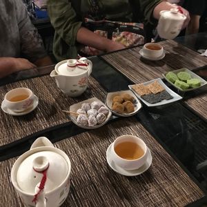 当日、大型のセダンで大体の希望を伝えて出発。有名なパイナップルケーキ屋の本店に行きたいと女性陣が言った後に、九份でお茶を云々と車内で話をしていると、台北市内でお勧めのお茶屋に案内してもらい落ち着いた時間を過ごさせてもらいました。そこでお茶とお茶入れ用のペットボトルを購入。目指すパイナップルケーキ屋でしこたま仕入れた後に、目指す十分、九份へ向かってくれました。
