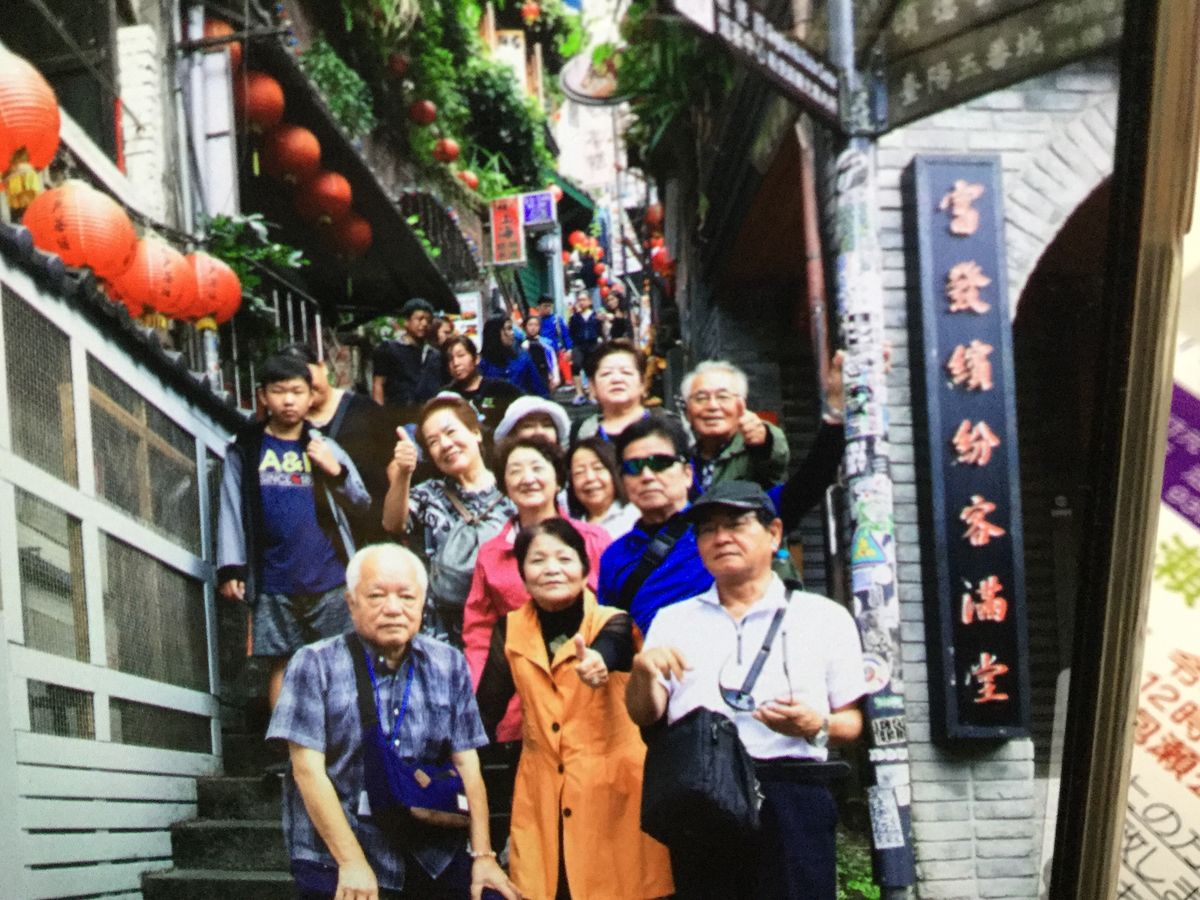 中学校の同級生10名で中型バスをチャーターしました。基隆港に迎えに来てもらったのですが、クルーズ船の入港が遅れ1時間近くも待たせてしまいました。でも、嫌な顔一つせず凄く親切でした。あちらこちらで迷子になりそうになったり、集合時間に遅れて探し回ったり、ハプニングの連続でしたが、ガイドさんの笑顔で安心して旅行をすることが出来、仲間も大満足、楽しい思い出ができました。
