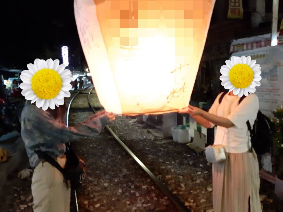 十分では燈篭上げの店を紹介してくださり、写真も撮ってくれました。交換したLINEできれいな写真をもらえます。