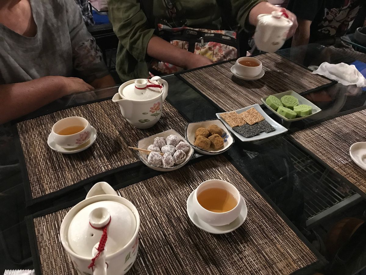 当日、大型のセダンで大体の希望を伝えて出発。有名なパイナップルケーキ屋の本店に行きたいと女性陣が言った後に、九份でお茶を云々と車内で話をしていると、台北市内でお勧めのお茶屋に案内してもらい落ち着いた時間を過ごさせてもらいました。そこでお茶とお茶入れ用のペットボトルを購入。目指すパイナップルケーキ屋でしこたま仕入れた後に、目指す十分、九份へ向かってくれました。