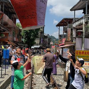 まずは1時間かけて十分へ。天燈上げの場所まで連れて行ってくれて、天燈の色の選び方、書き方を教えてくれて、写真もたくさん撮ってくれました。その場でフリータイムを依頼して時間調整してもらいました。フリータイムを終えて車へ戻ると、冷たいお絞りを用意してくれていて、暑い身体には嬉しいサービスでした。滞在時間約1時間。天燈上げをして散策するには十分でした。
