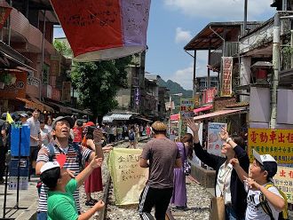 まずは1時間かけて十分へ。天燈上げの場所まで連れて行ってくれて、天燈の色の選び方、書き方を教えてくれて、写真もたくさん撮ってくれました。その場でフリータイムを依頼して時間調整してもらいました。フリータイムを終えて車へ戻ると、冷たいお絞りを用意してくれていて、暑い身体には嬉しいサービスでした。滞在時間約1時間。天燈上げをして散策するには十分でした。