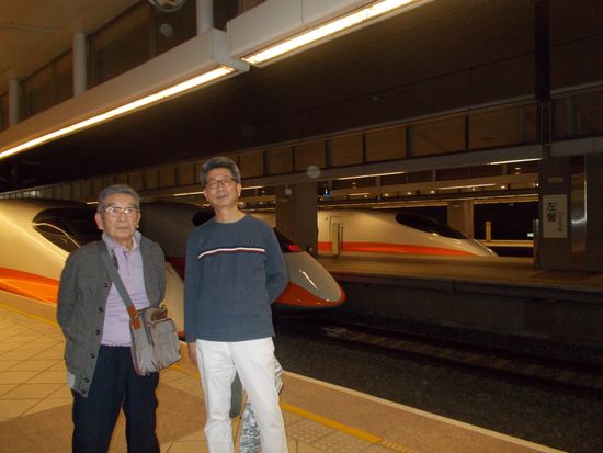 台北から高雄まで、わずか1時間30分で到着です。日本の新幹線と遜色ありません。台北駅舎は圧倒的な重厚さで一見の価値ありです。新幹線のチケットはバウチャーとパスポートを提示し、事前に調べておいた乗りたい時間も紙に書いて示すと問題なくゲットできます。私たちは金曜の昼に乗車しましたが、希望の新幹線に乗ることができました。が、混雑していることもあるらしいので、希望前後の時間も確認しておくとよりベターだと思います。台北駅構内の電車のからくり時計(1時間毎に動くようです)の後方に進むと、新幹線チケットの専用窓口がありますので、ご注意を。安くて美味しい駅弁を楽しみながらいい旅ができ、大満足しました。
