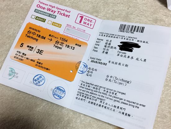 | プラン: | 台中 - 台北 間 |