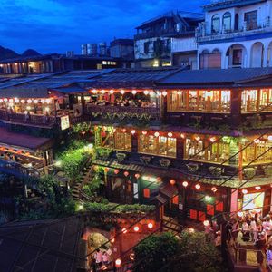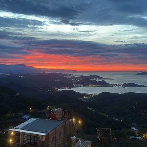 九份でも阿妹茶樓の向かいの海悅樓景觀茶坊を19:00から予約している旨を話したら知り合いだから17:45から入れていただき、テラス席までご用意してくれ夕暮れから夜まで素晴らしい写真時間を与えてくれました!