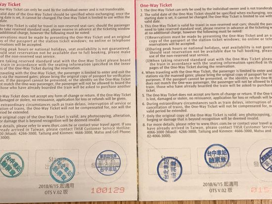 台北駅で使用日が翌々日であることを伝えると、時間を表示してくださり、指定席を予約してもらいました。簡単な英語で乗り切れるかと思います。